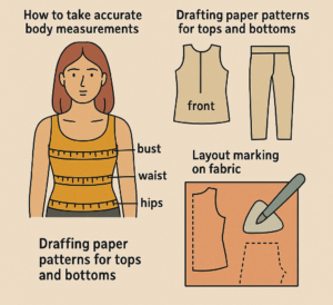 Learning accurate body measurements is the foundation of tailoring. This module covers: