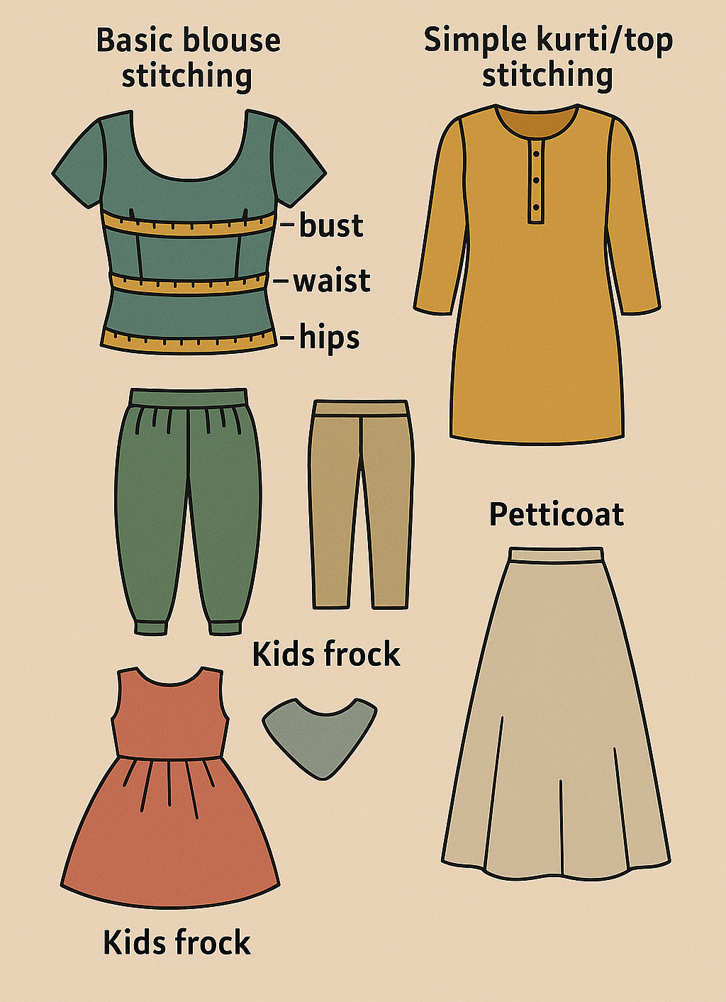 Our Basic Tailoring Course is designed for beginners who want to learn the foundations of stitching and garment making. This course focuses on practical, hands-on training to help you confidently create everyday wear for women and kids.