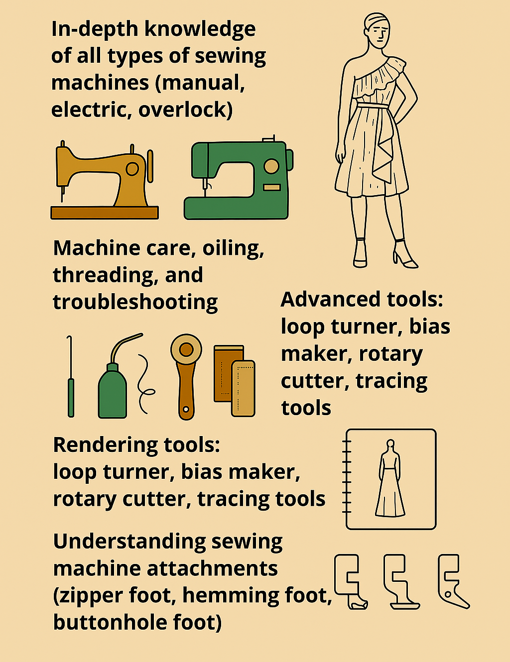 In-depth knowledge of all types of sewing machines (manual, electric, overlock)